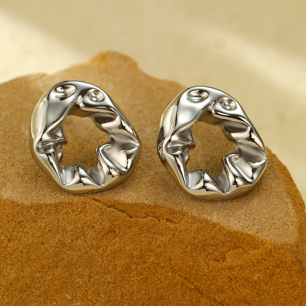 Retro Minimalist Irregular Asymmetric Lava Pleated Steel stud Earrings