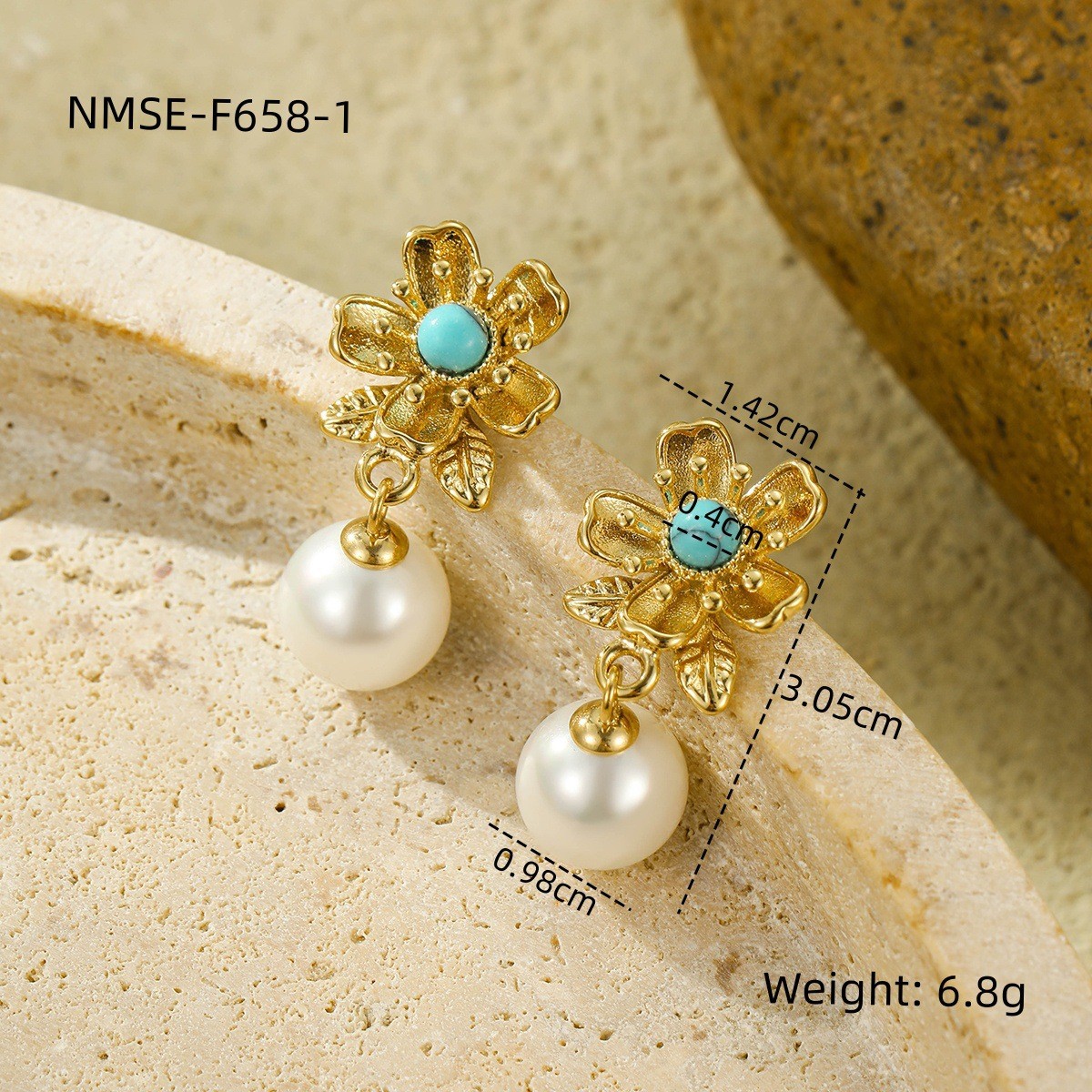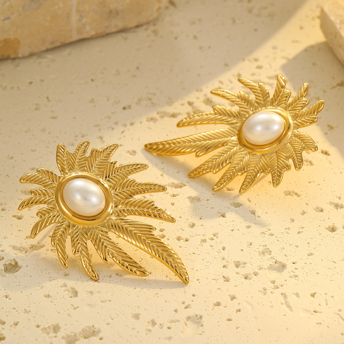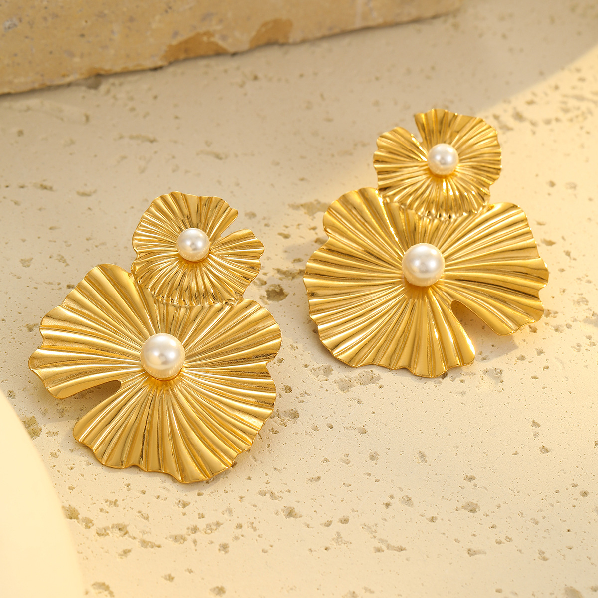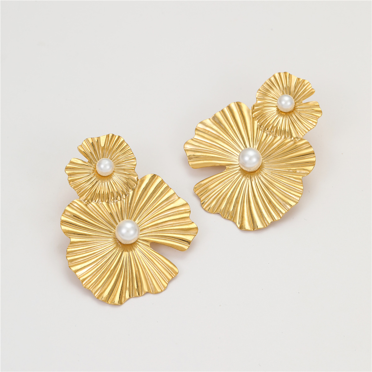 1 unique Petal Pearl Non Fading Stainless Steel Earrings
